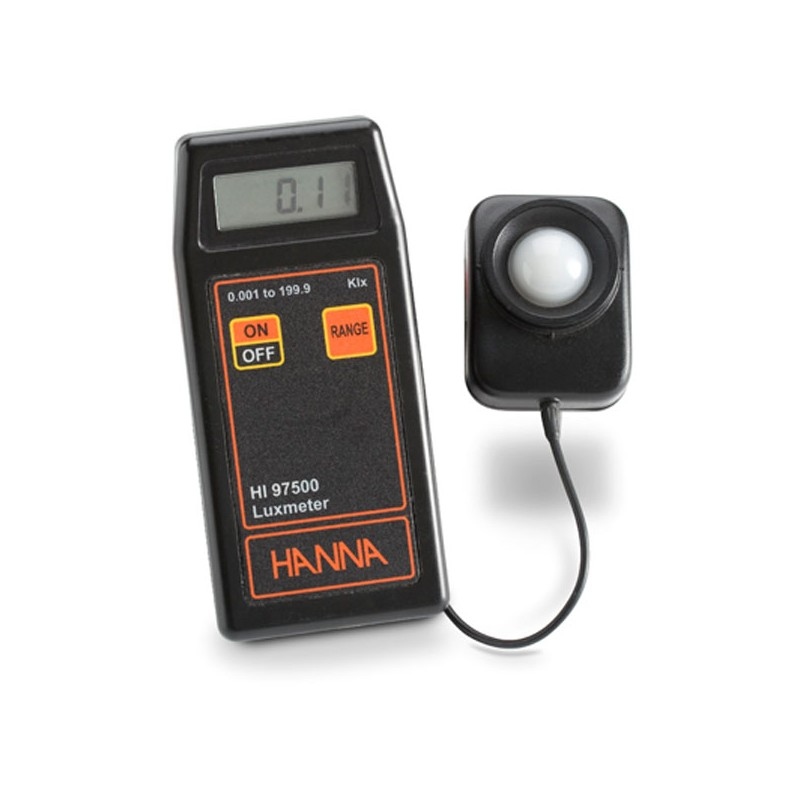 The HI-97500 is a portable Lux meter designed to perform light measurements simply and accurately. The instrument is supplied with a light sensor connected by a fixed 1.5 m coaxial cable to allow measurements to be taken from a distance without any interference from the operator.