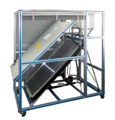 This unit is a system that transforms solar energy into usable thermal energy. It uses the thermosiphon system to heat water or the traditional pumping system. In both cases, the absorbed thermal energy is given by the simulated solar radiation, in our case, it is done using a panel with powerful luminous sources.