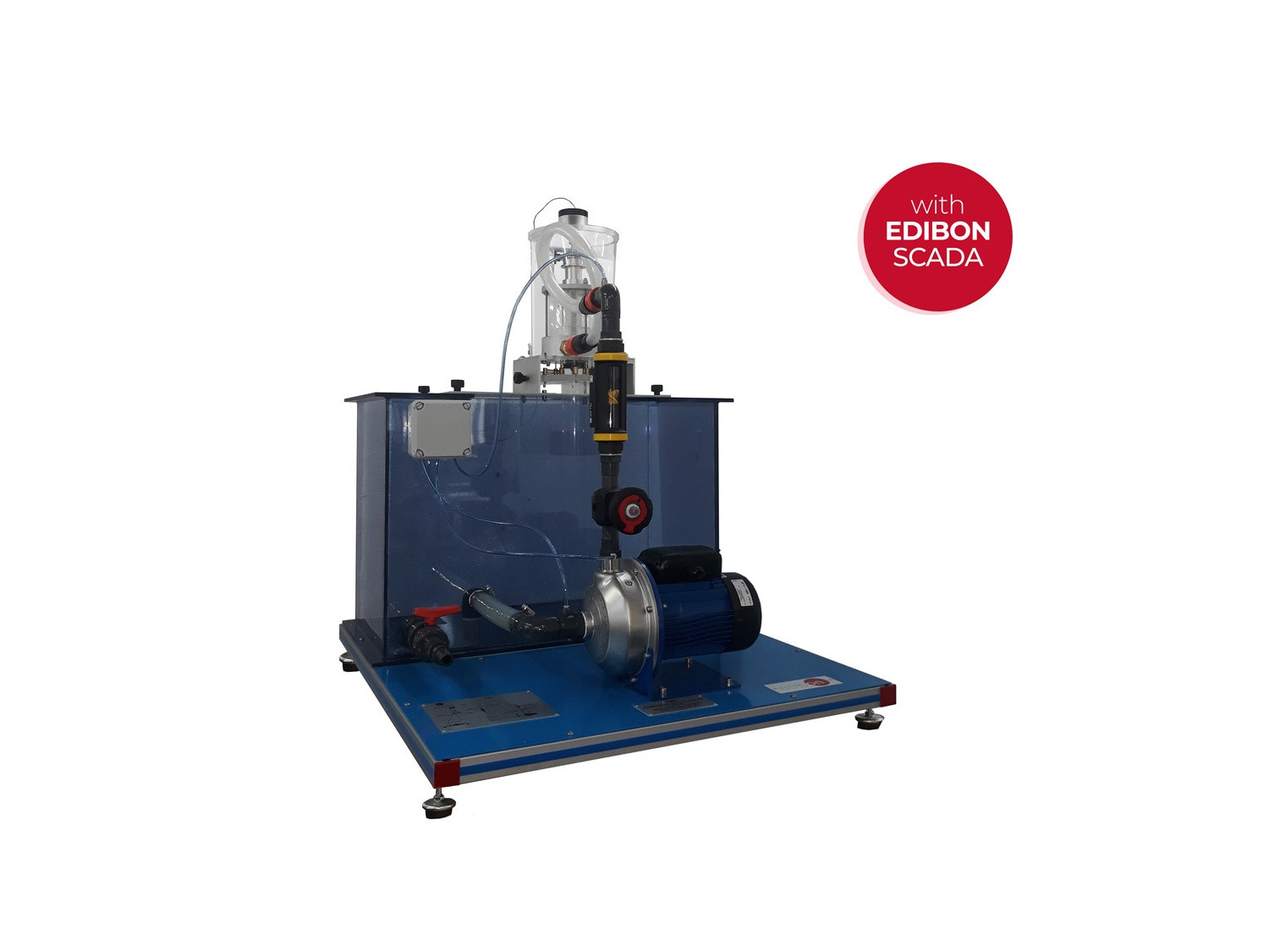 In addition, the unit is equipped with a pressure sensor placed at the turbine water inlet which measures the inlet pressure, a flow sensor to measure the turbine water inlet flow, an optical sensor which determines the speed of the turbine shaft, and has two pressure sensors at the pump inlet and outlet, in order to obtain its characteristic curve.