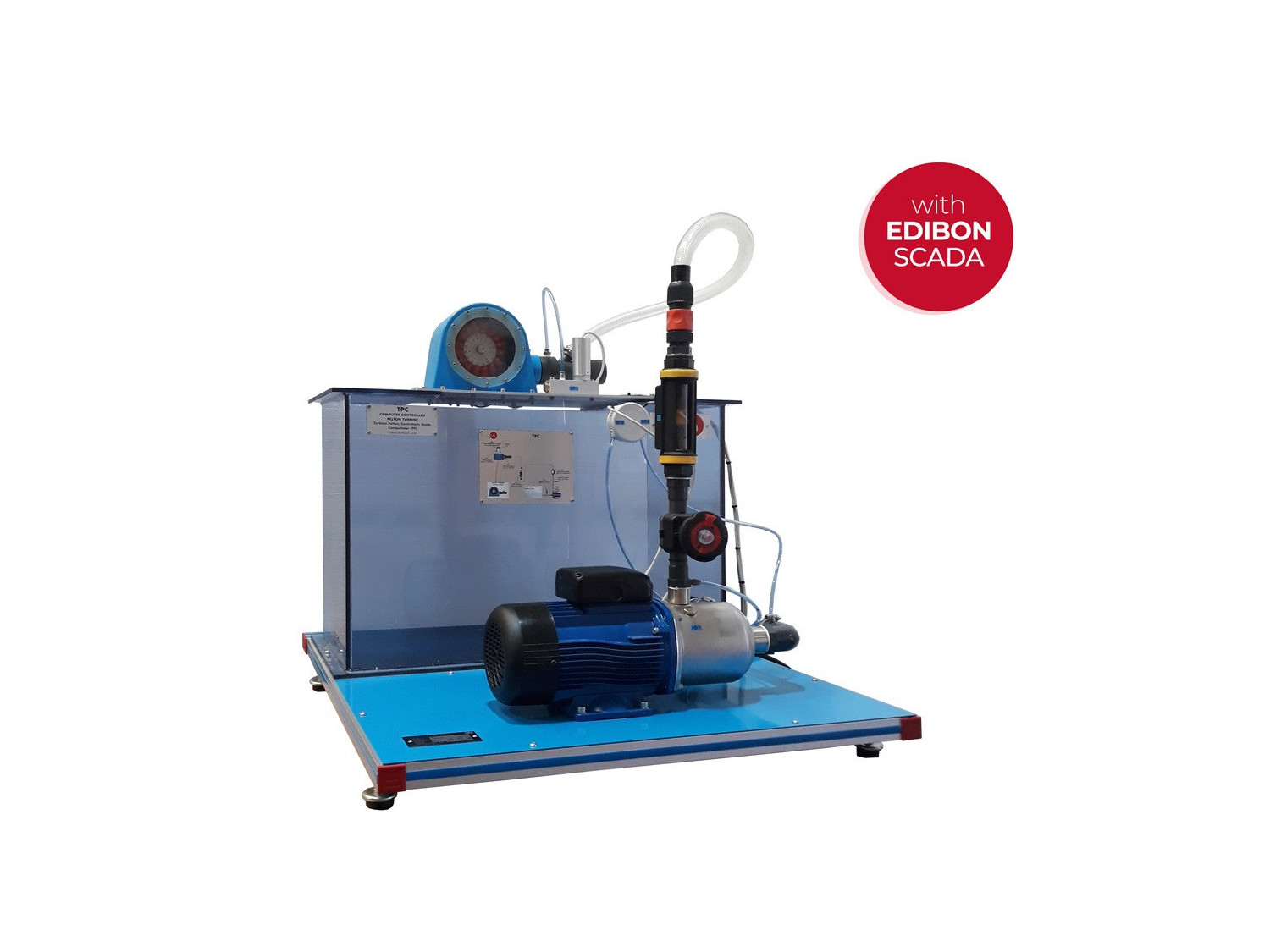 In addition, the unit is equipped with a pressure sensor placed at the turbine water inlet which measures the inlet pressure, a flow sensor to measure the turbine water inlet flow, an optical sensor which determines the speed of the turbine shaft and has two pressure sensors at the pump inlet and outlet, in order to obtain its characteristic curve.