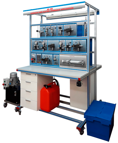 The optional hydraulic kits available with the unit, offers the necessary elements to perform a complete study of management and utilization of the actual hydraulic circuits, with some examples of uses of this type of circuits.