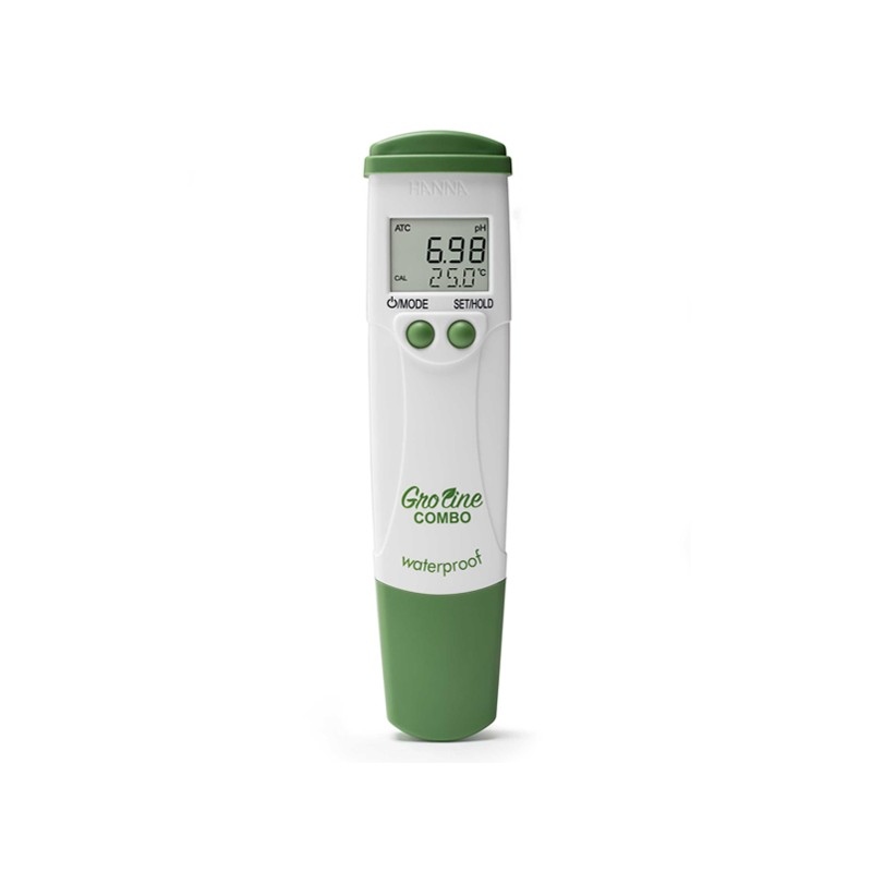 The HI-98131 GroLine tester features a large multi level LCD which displays both pH, EC or TDS and temperature readings simultaneously. The pH readings are displayed with a 0.01 resolution, while the EC and TDS readings are displayed with a 0.01 mS/cm and 10 ppm (mg/L) resolution.